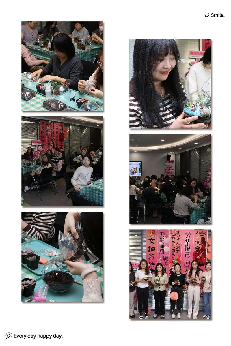 宏亞公司工會組織了“柔光萬丈,自在生長”微景觀DIY主題活動,女職工們用靈巧的雙手將方寸玻璃瓶化作詩意天地,有人打造出“苔痕上階綠”的古典庭院,有人構思出“小橋流水人家”的田園牧歌,活動現場歡聲笑語不斷,大家在綠意盎然的創(chuàng)意世界中感受春日美好,共度溫馨時光。