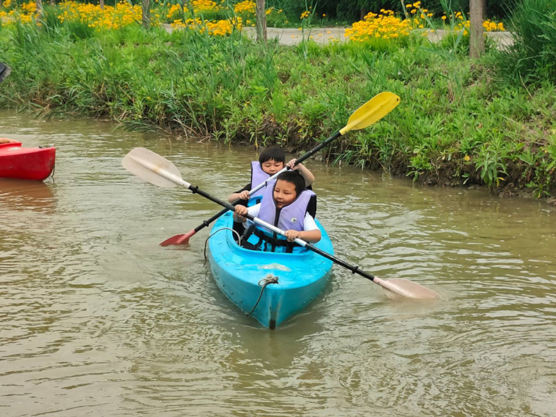 濕地皮劃艇項目將上午的活動推向高潮。大家躍上皮劃艇,在粼粼波光中揮槳前行,或你追我趕,上演一場酣暢淋漓的水上競速;或悠然自得,沉醉于濕地的如畫風光。水面上歡笑聲與加油聲此起彼伏,奏響了活力四溢的夏日樂章。