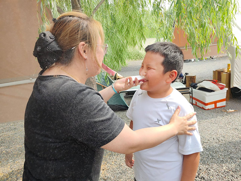 “面粉接力大作戰(zhàn)”堪稱對團隊協(xié)作與默契的雙重考驗。隊員們需借助撲克牌,小心翼翼地進行面粉傳遞。為守護這珍貴的“白色接力棒”,大家各顯神通:屏息凝神者有之,放緩動作者有之。然而過程仍是狀況頻出:一不留神,面粉便沾了滿臉,瞬間化身“白胡子老爺爺”,引得全場忍俊不禁、捧腹大笑。就在這此起彼伏的歡笑聲中,無論大人還是孩子,都全情投入、緊密配合,為了團隊的共同目標傾盡全力。