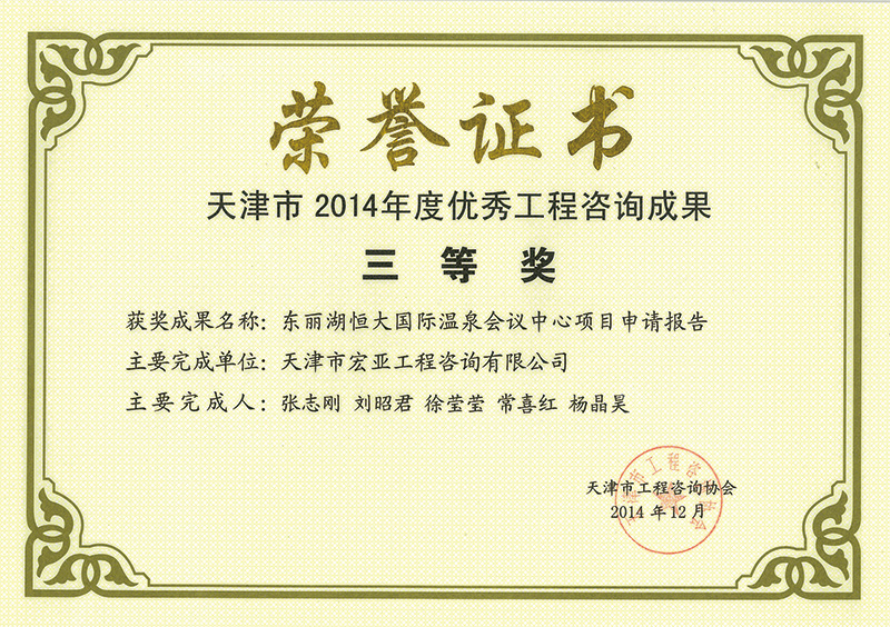 優(yōu)秀咨詢(xún)成果三等獎(jiǎng)(2014)