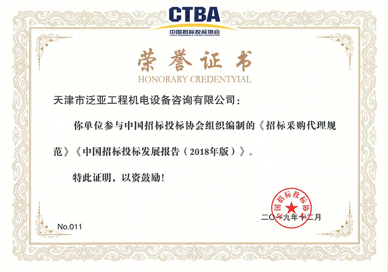 招標(biāo)采購代理規(guī)范編制榮譽(yù)證明
