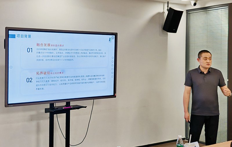 公司戰(zhàn)略市場(chǎng)部經(jīng)理于浩鵬結(jié)合參加集團(tuán)“融合發(fā)展、拓界破局”營銷培訓(xùn)班心得體會(huì)進(jìn)行了交流分享。